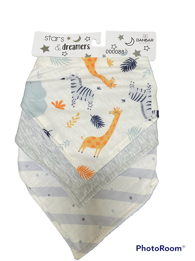 Giraffes & Zebras & Elephants 3-Pack Bandana Bibs